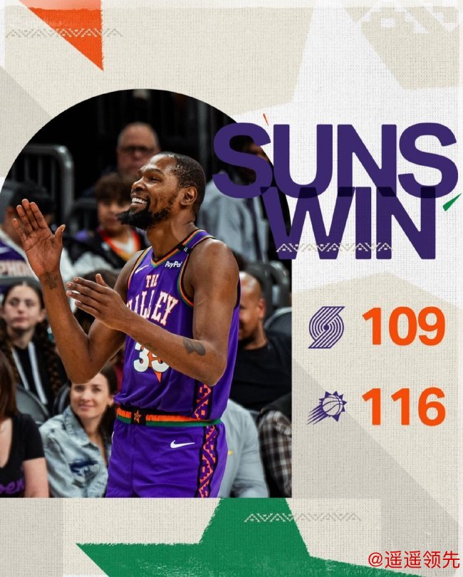 杜兰特复出后,太阳取得2连胜,14胜11负继续排在西部第八。