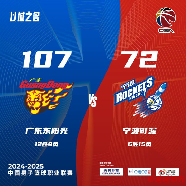 北京时间12月23日消息,2024-2025赛季CBA常规赛第21轮,广东男篮107-72大胜宁波男篮。